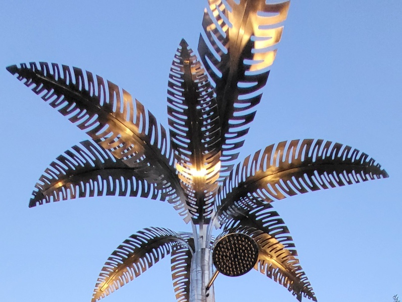 • Edelstahlpalme als Gartendusche, beleuchtet, auf Wunsch mit Edelstahldurchlauferhitzer am Wasseranschluss