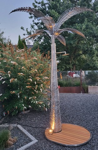 Diese Duschpalme aus Edelstahl ist genau dafür gemacht - mit Plattform,mit Beleuchtung und als echtes Highlight im Garten. Samt Wasserhahn für die Füße und Hände oder zum Blumengiessen- ca. 2,7m hoch