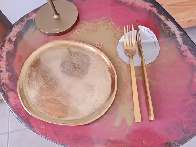 Deckel aus Epoxidharz mit verschiedenen Granulaten bzw. Glas-Mosaiksteinen