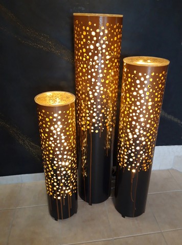 Der Größe der Zylinder beträgt (80*20cm; 100*22,5cm; 120*25cm). Aluminium unterschiedlich lackiert.