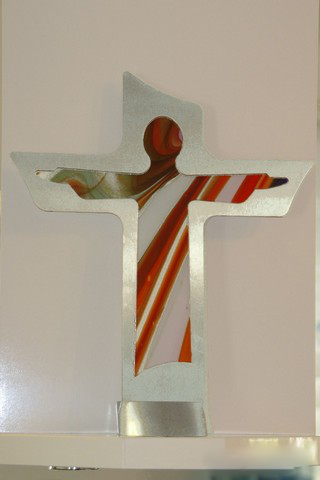 Kreuze für den Innenbereich, aus Edelstahl mit eingelegtem mundgeblasenen Flachglas. Dargestellte Farbauswahl nur exemplarisch, da jedes Kreuz ein Unikat ist. Größe 30cm hoch und 26cm breit. Zum aufhängen oder hinstellen (mit Edelstahlständer erhältlich).
