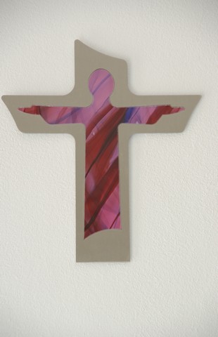 Kreuze für den Innenbereich, aus Edelstahl mit eingelegtem mundgeblasenen Flachglas. Dargestellte Farbauswahl nur exemplarisch, da jedes Kreuz ein Unikat ist. Größe 30cm hoch und 26cm breit. Zum aufhängen oder hinstellen (mit Edelstahlständer erhältlich).