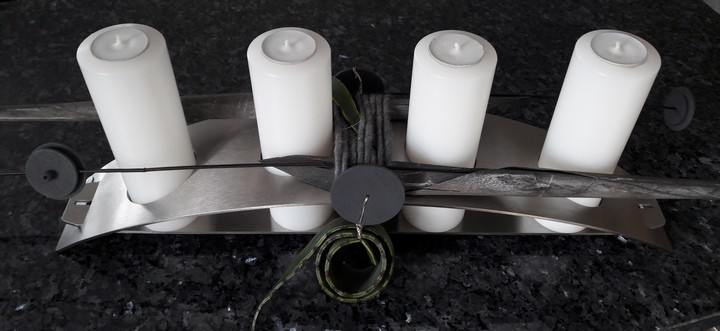 Die Größe beträgt ca.55cm Lang, Höhe 20cm, Breite 12cm. Der einzelne Kerzenleuchter ist ca.19cm lang,Höhe 15cm, Breite 12cm.